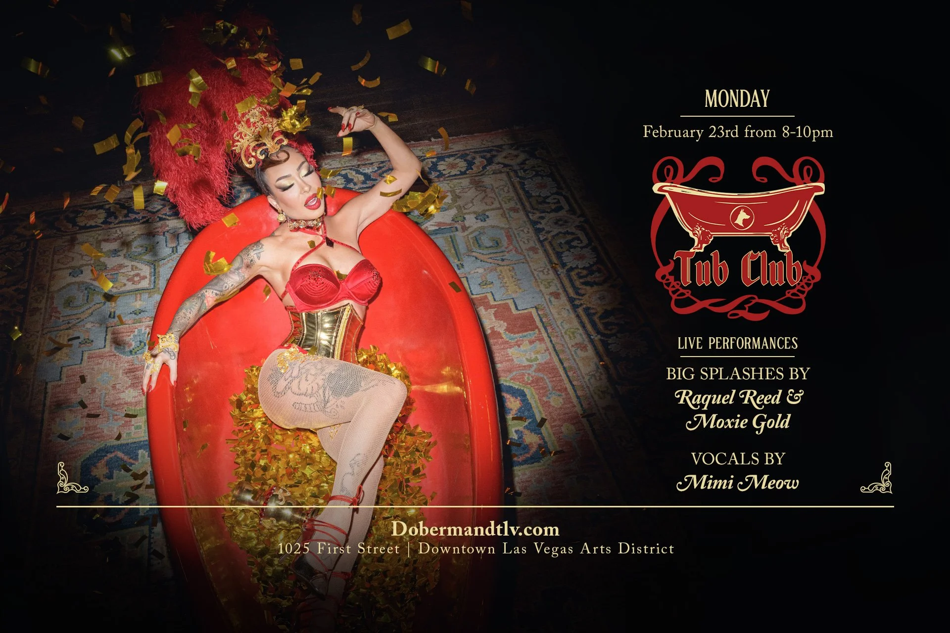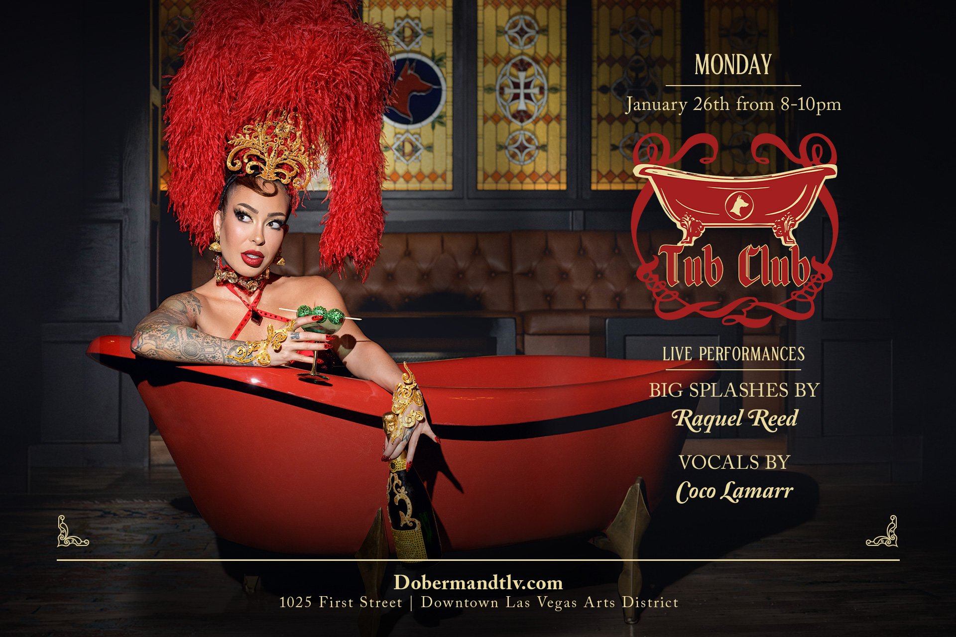 Experience sultry sophistication with classic live music and captivating burlesque — performance by Raquel Reed’s iconic tub act! A uniquely Vegas twist on timeless entertainment.